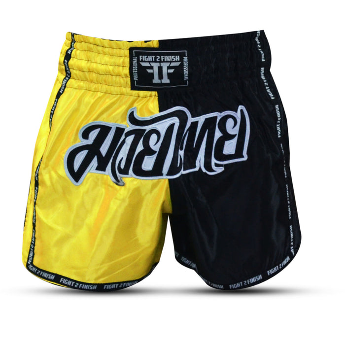 FIGHT 2 FINISH YELLOW/BLACK ELITE THAI SHORTS