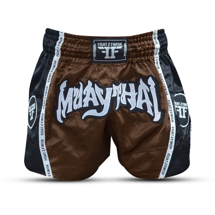 FIGHT 2 FINISH BROWN ELITE THAI SHORTS