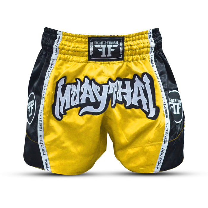 FIGHT 2 FINISH GOLD/BLACK ELITE THAI SHORTS
