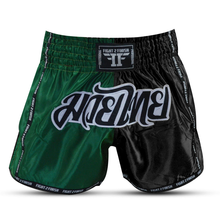 FIGHT 2 FINISH GREEN/BLACK ELITE THAI SHORTS