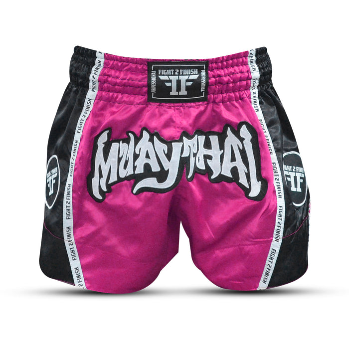 FIGHT 2 FINISH PINK/BLACK ELITE THAI SHORTS