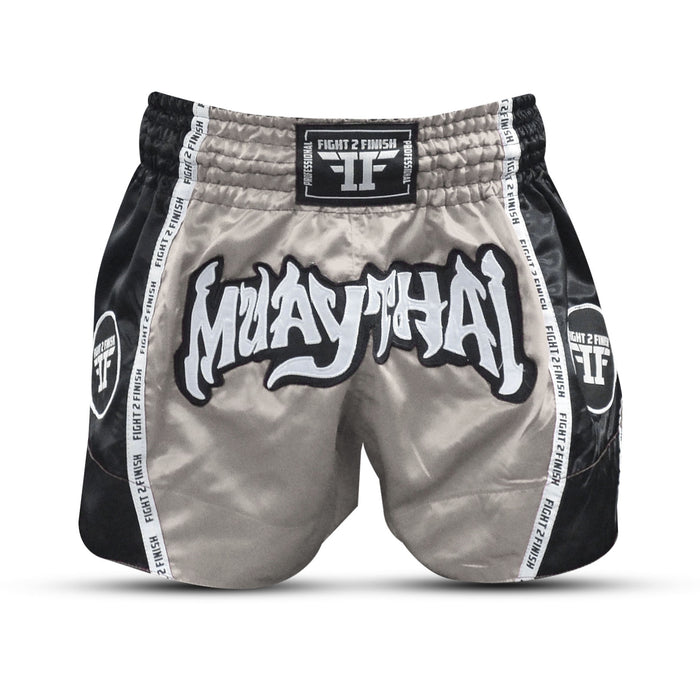 FIGHT 2 FINISH SILVER/BLACK ELITE THAI SHORTS