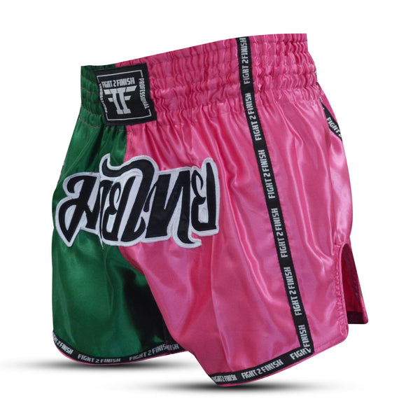 FIGHT 2 FINISH FLU PINK/GREEN ELITE THAI SHORTS
